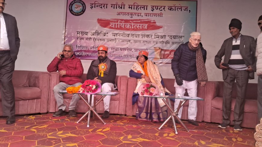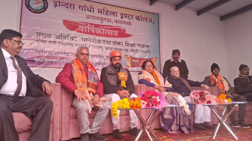 वाराणसी के अगस्तकुण्डा स्थित इन्दिरा गाँधी महिला इण्टर कॉलेज में वार्षिक समारोह आयोजित हुआ। मुख्य अतिथि दयाशंकर मिश्र 'दयालु' ने छात्राओं का उत्साहवर्धन किया।