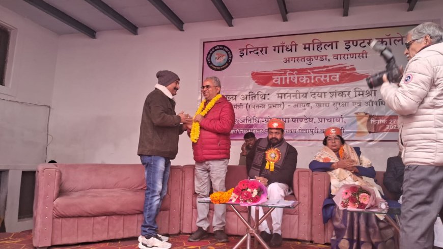 वाराणसी। अगस्तकुण्डा स्थित इन्दिरा गाँधी महिला इण्टर कॉलेज का वार्षिकोत्सव शनिवार, 27 दिसम्बर 2025 को अत्यंत भव्यता और सांस्कृतिक उल्लास के साथ संपन्न हुआ। छात्राओं द्वारा प्रस्तुत विविध रंगारंग कार्यक्रमों ने दर्शकों को मंत्रमुग्ध कर दिया और विद्यालय प्रांगण तालियों की गड़गड़ाहट से गूँज उठा।