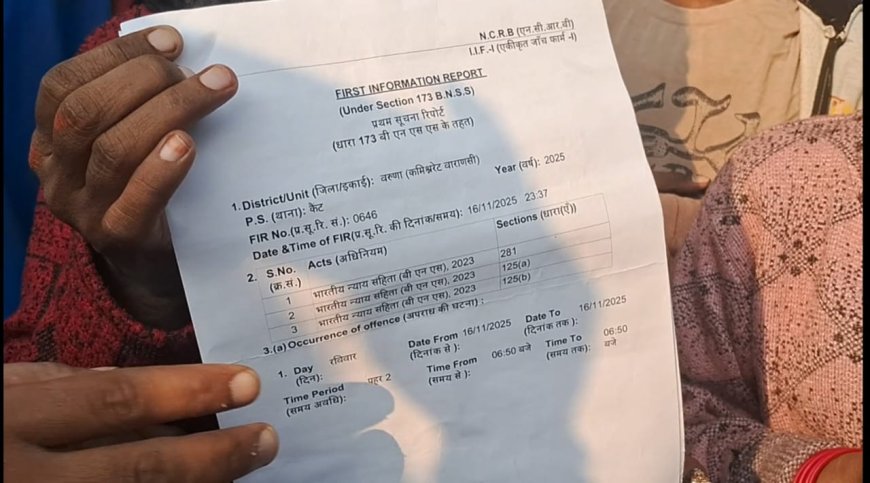 वाराणसी सेंट्रल जेल रोड पर भीषण सड़क हादसा। रॉन्ग साइड से आई होंडा सिटी कार ने श्याम नारायण को टक्कर मारी। परिजनों का आरोप: ड्राइवर नाबालिग था, पुलिस मदद नहीं कर रही।